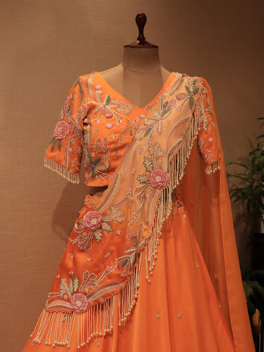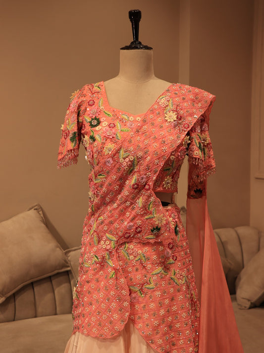 Peach drape lehenga set