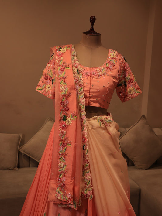 peach shaded embroidered lehenga set