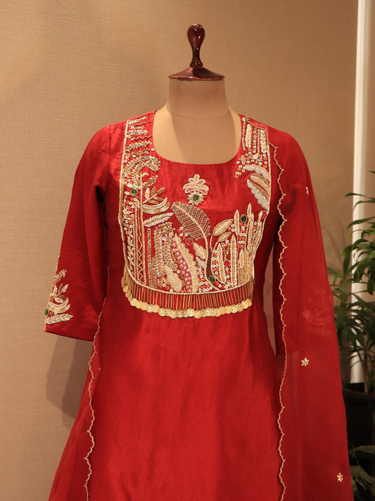 Red embroidered kurta plazo set