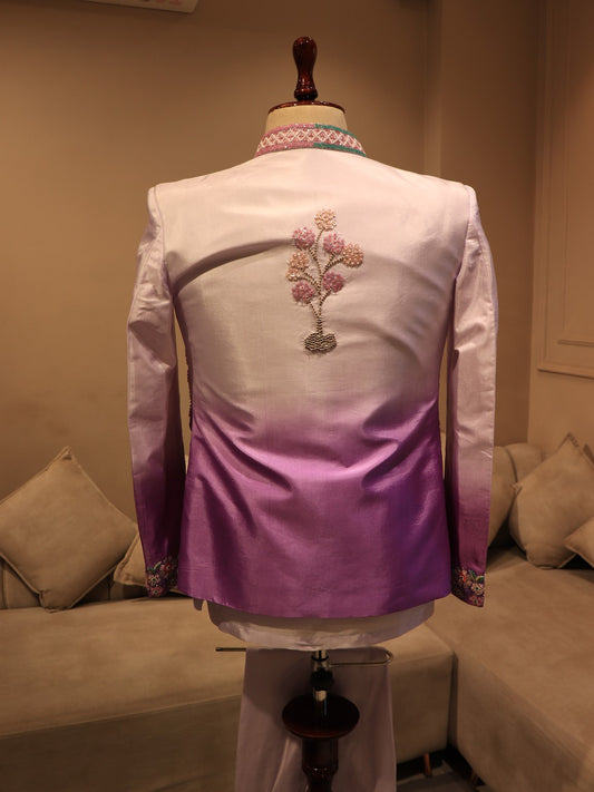 Lavander shaded peacocok mens indo western