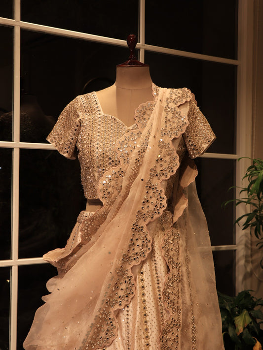 Champagne gold tissue mirror lehenga set