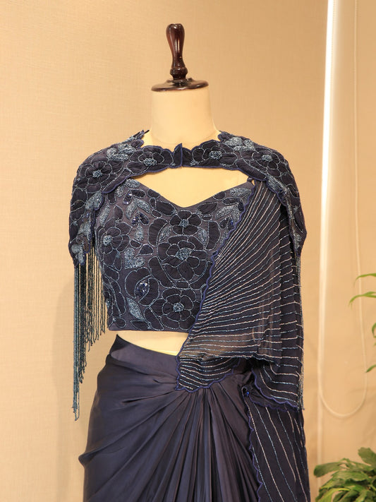 Navy Blue drape saree