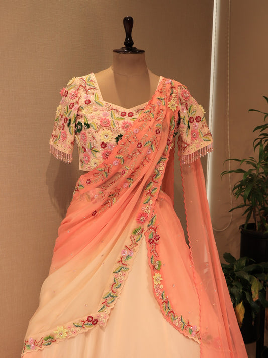 peach shaded drape lehenga set