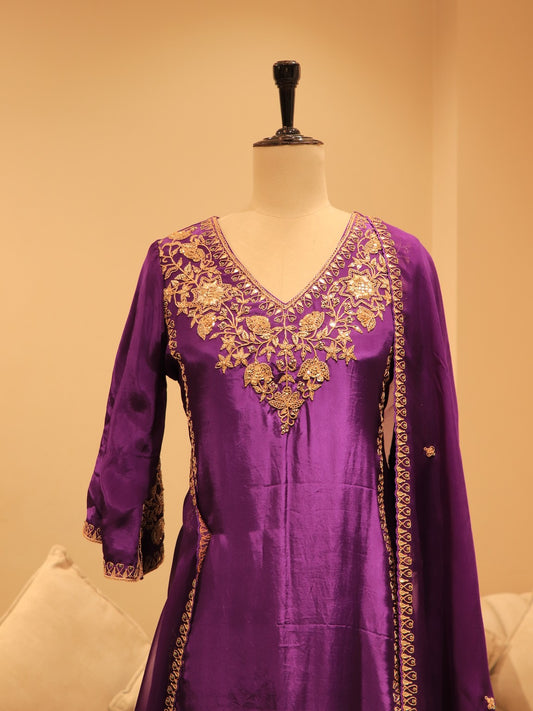 Deep purple marodi kurta pants dupatta