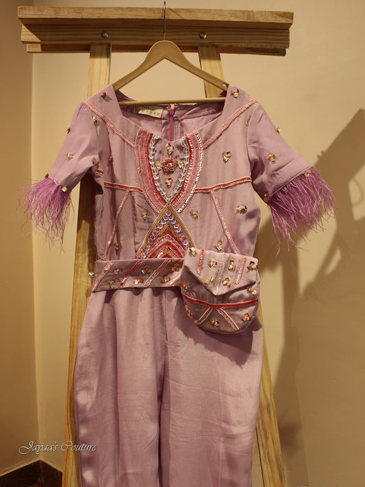 Lavendar jumpsuit with belt pouch