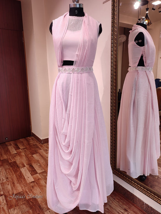 Lilac shaded drape saree with plazo
