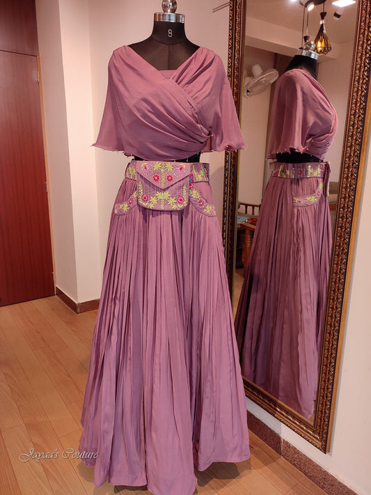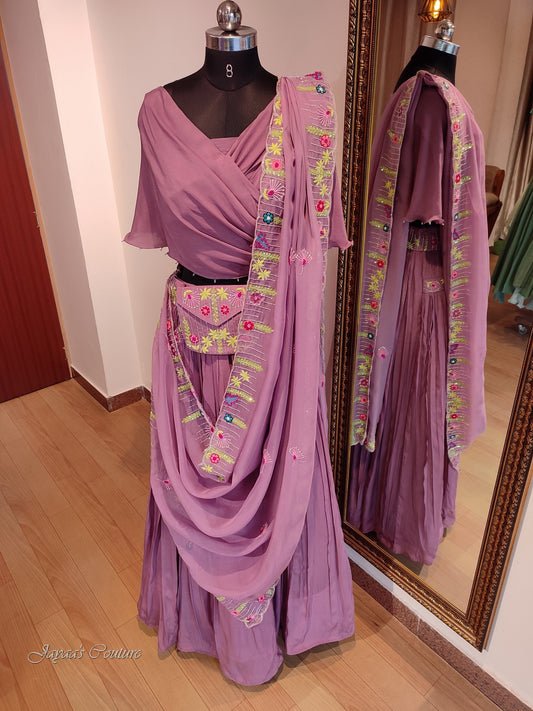 Marron skirt with mustard yellow peplum blouse and Ghatchola dupatta