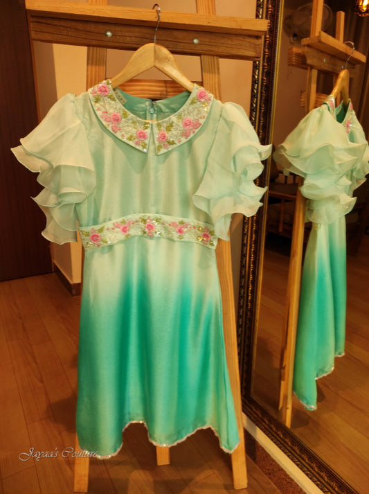Pastel sea green ombre shaded Dress with Embroidered belt