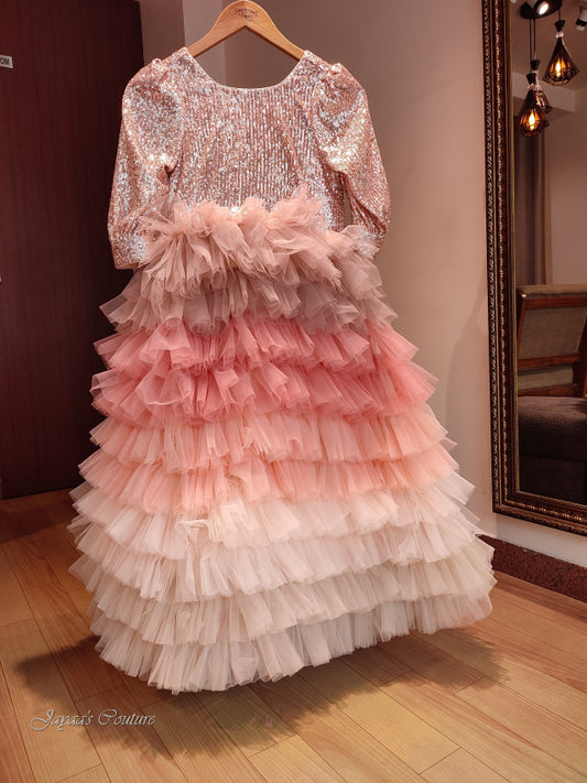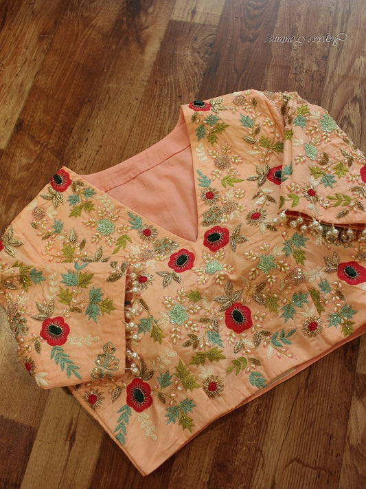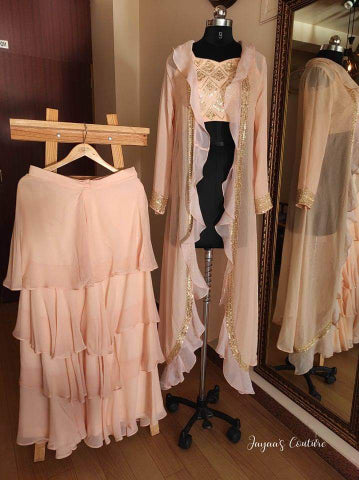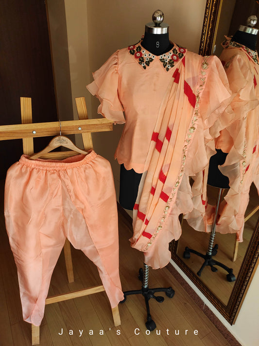 Peach shaded peacockhand painted mens neheru jacket kurta pants