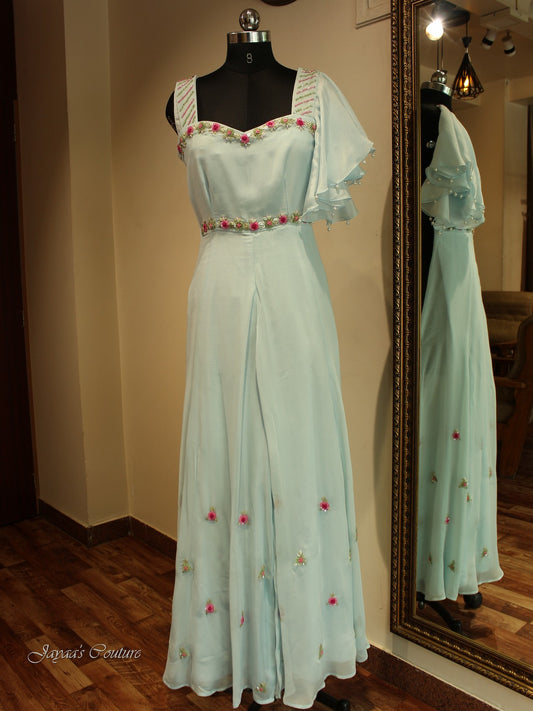Powder blue hand painted gown