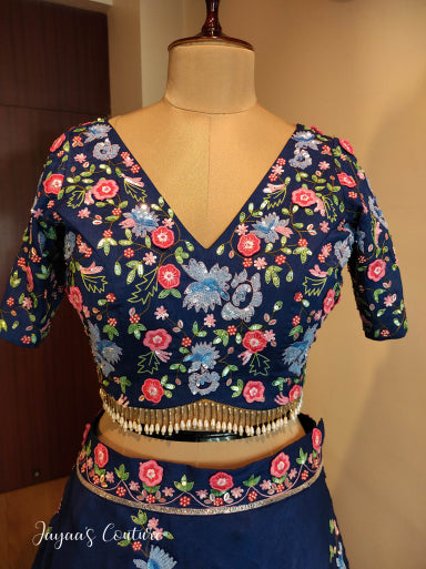 Royal blue embroidered lehenga set