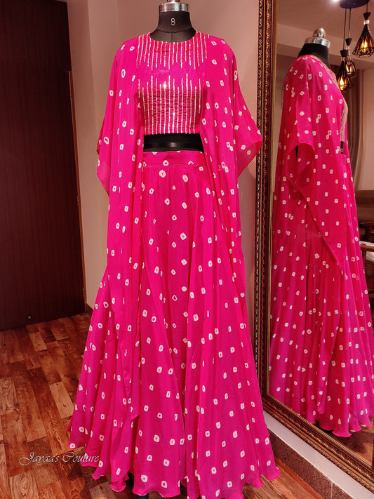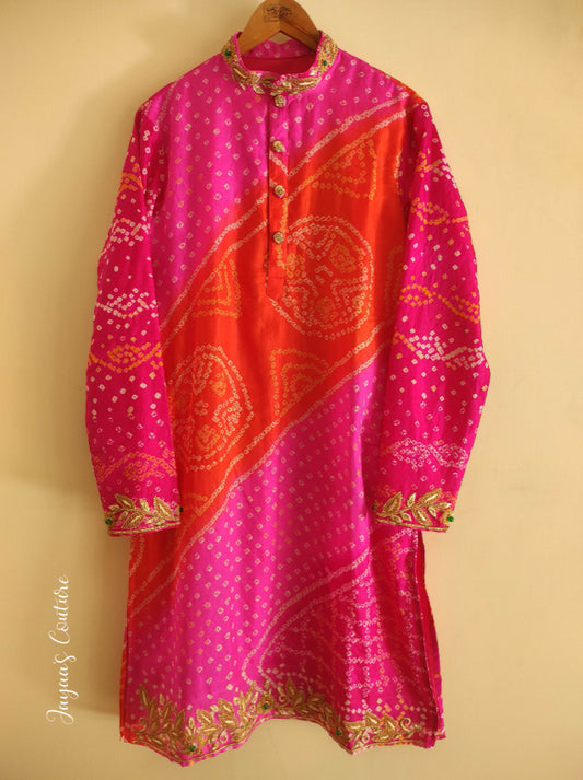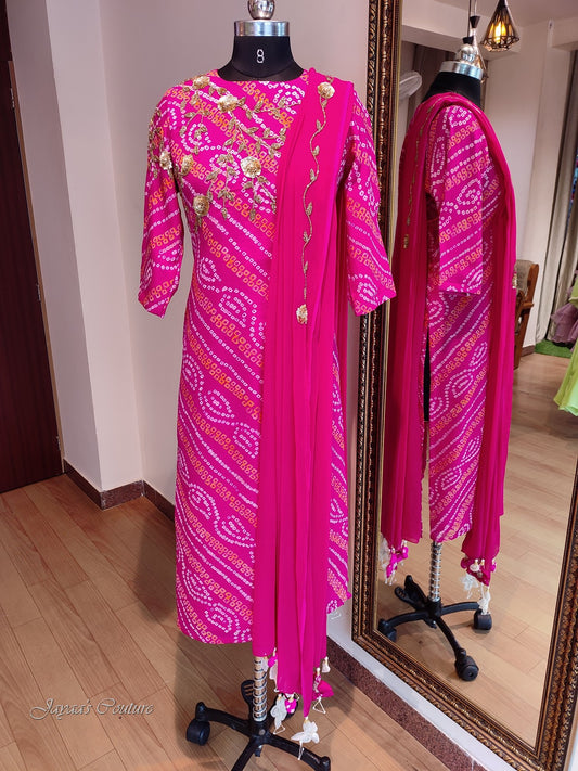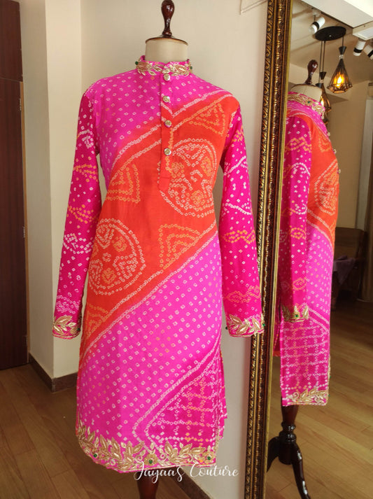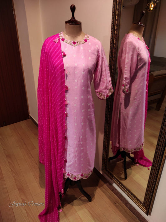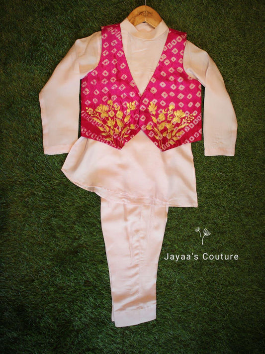 pink Kurta pants with Bandej jacket Adorned with pitta work.
