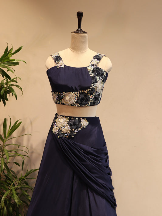 Navy blue crop top with skirt