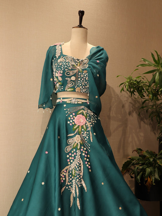 Bottle green crop top drape skirt