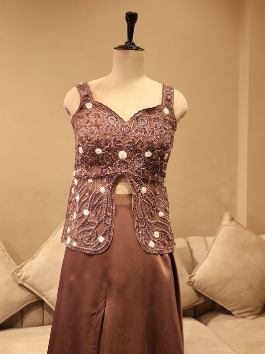 Brown peplum top with plazo