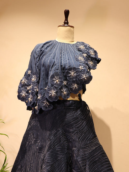 Navy blue cape crop top fish cut skirt