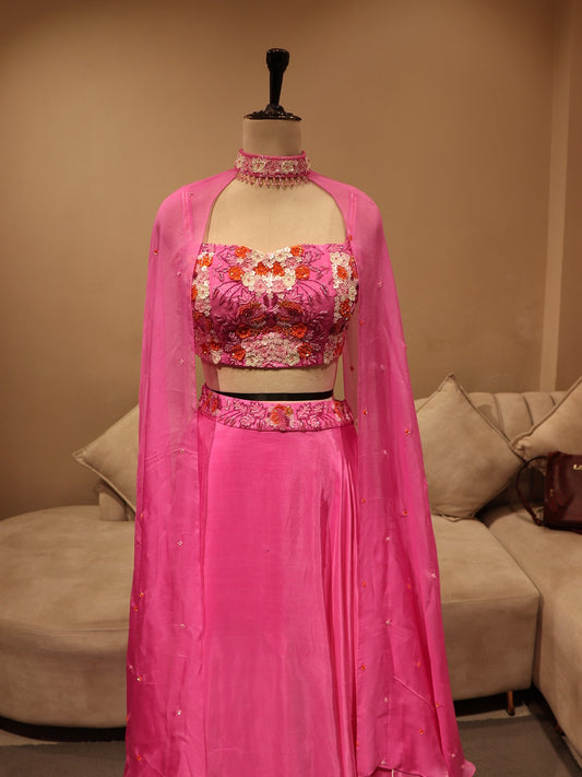 Peachish pink cape with top skirt