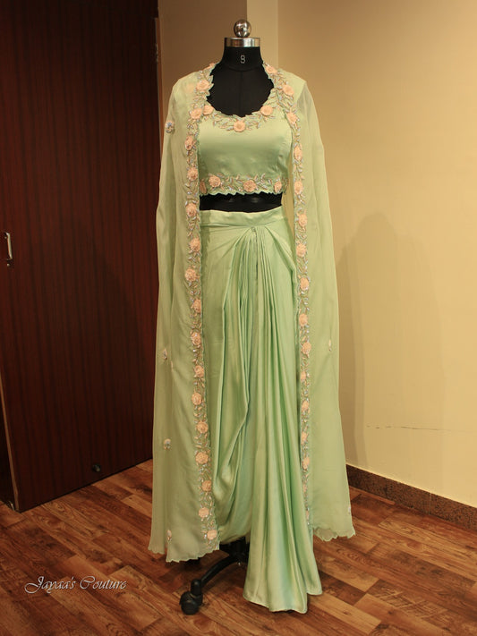 Green crop top with skirt and Cape