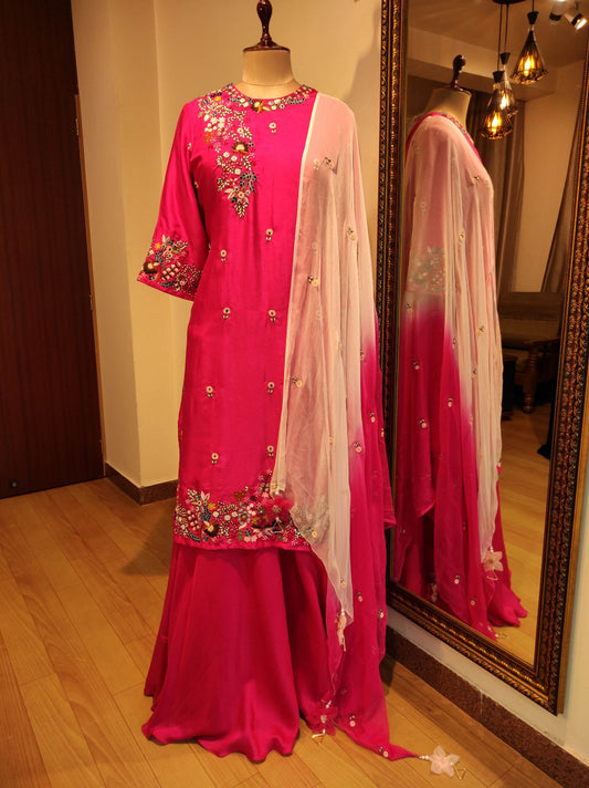 Fuscia pink kurta with skirt & dupatta