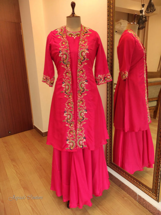 Fuscia pink skirt kurta & jacket