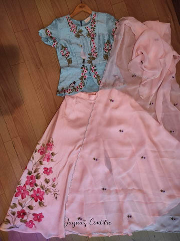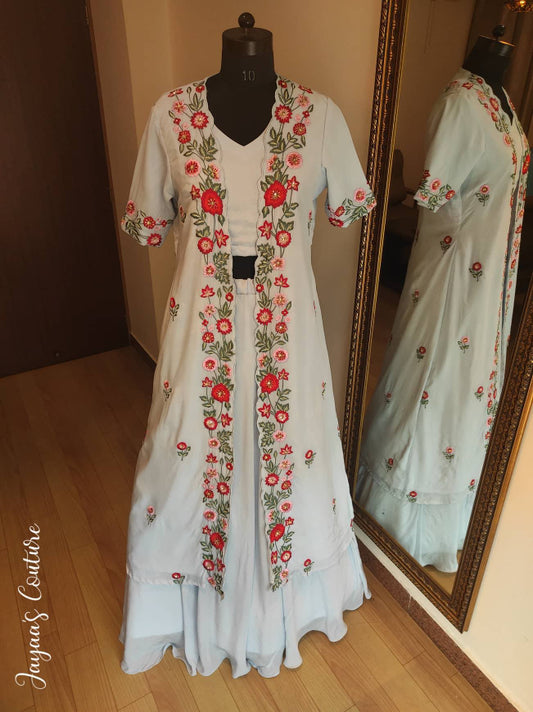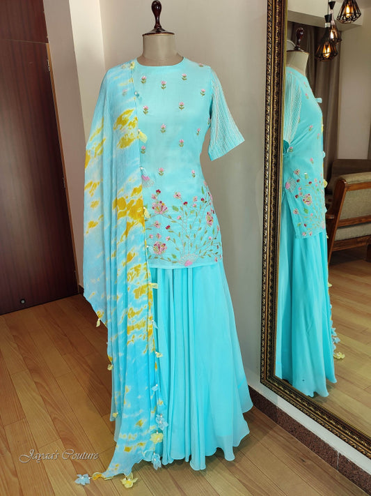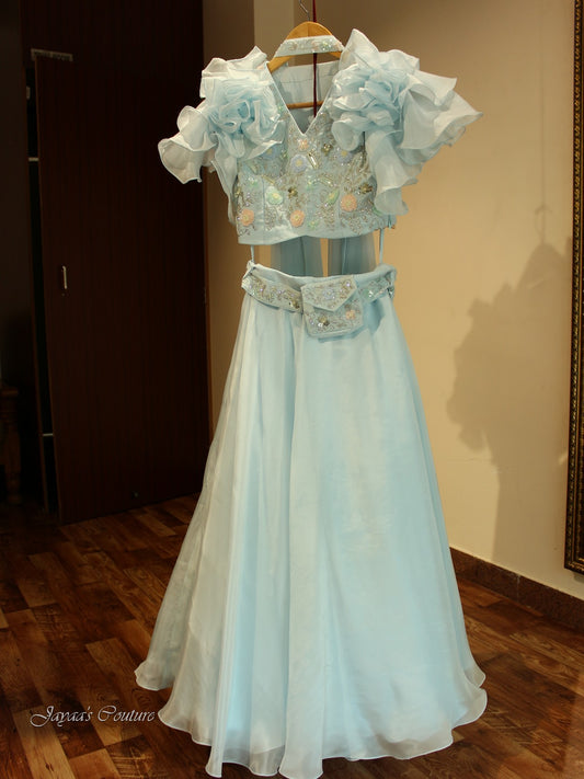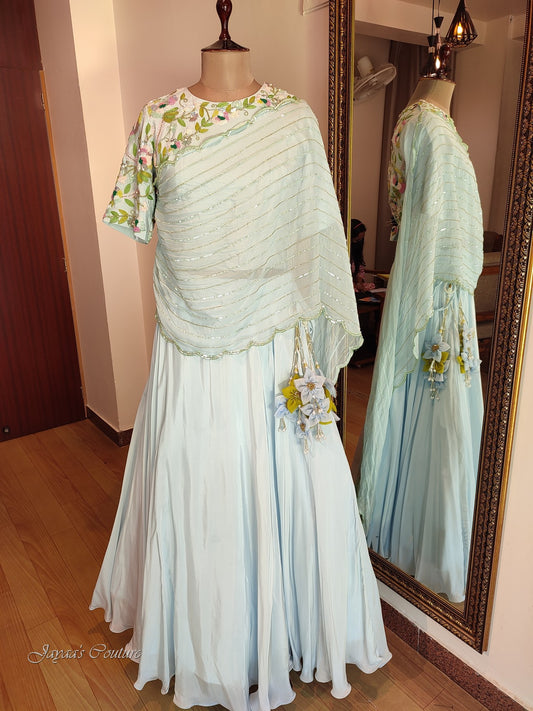 Powder blue Skirt crop with drape dupatta
