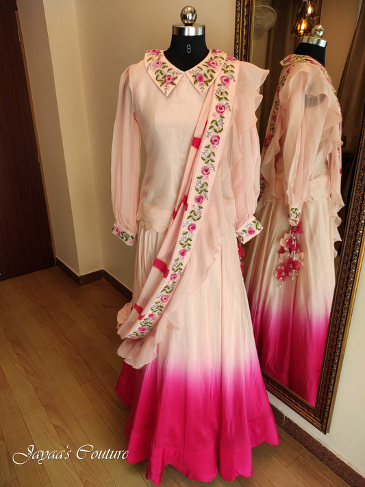 Peach top & ombre skirt with draped dupatta