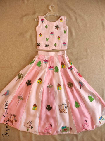 Pink dual tone crop top with skirt