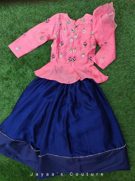 Pastel pink peplum with blue skirt