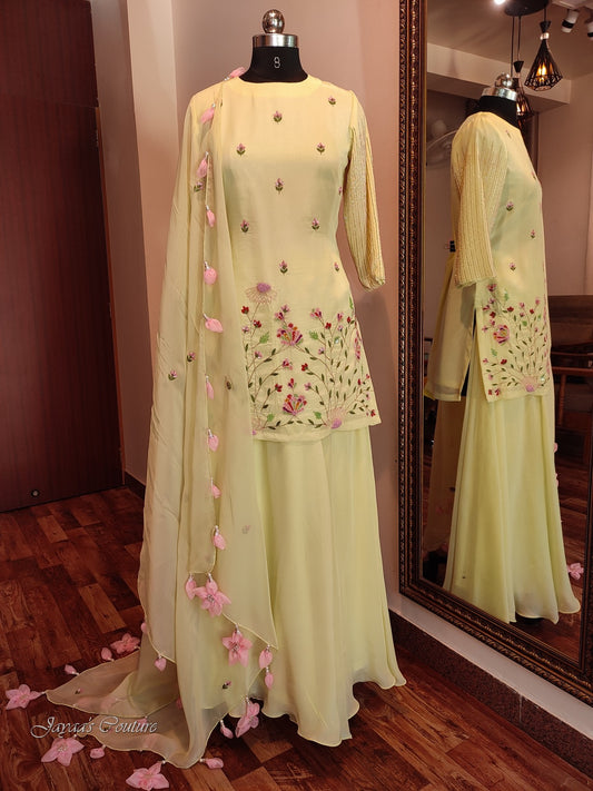 Pastel pista green kurta with skirt and dupatta
