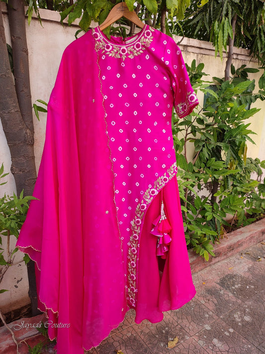 Rani Bandhani Kurta With Skirt & Dupatta