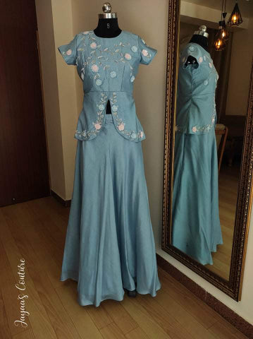Powder Blue Peplum top with skirt & dupatta