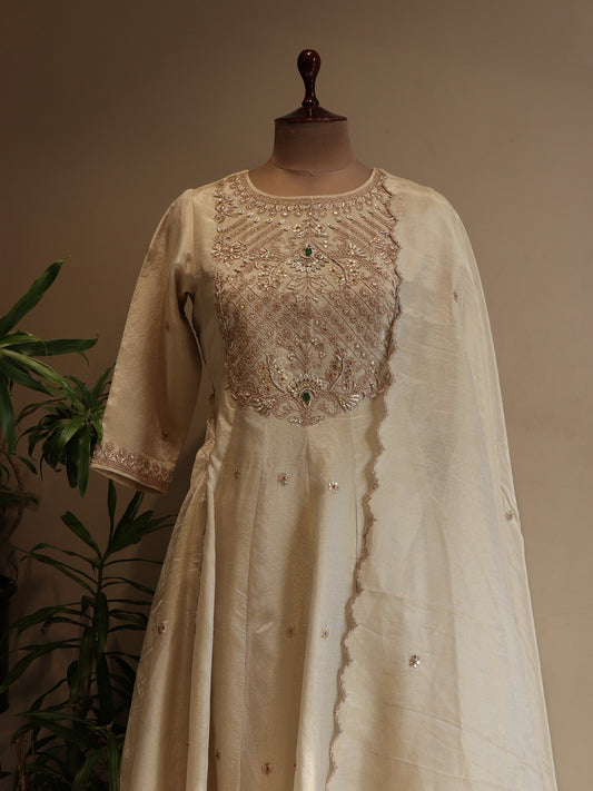 Pearl white tissue anarkali with plazo