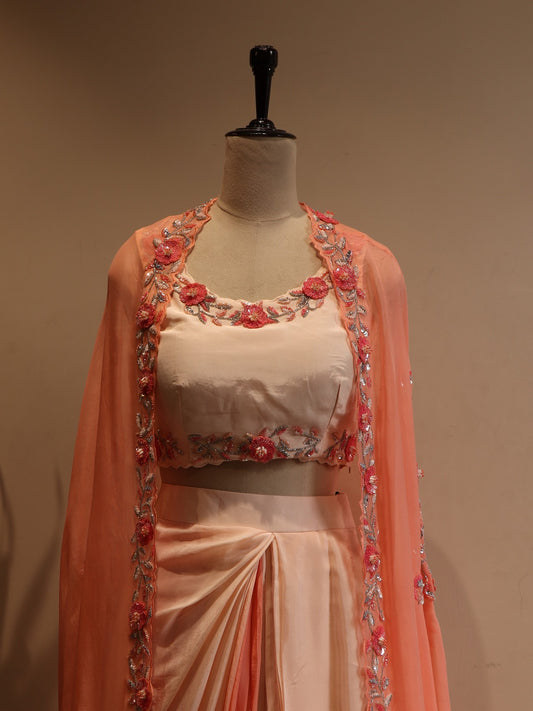 Peach shaded cape top skirt