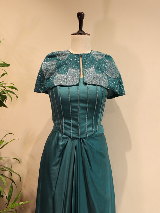 Turquoise blue cape top with fish cut skirt