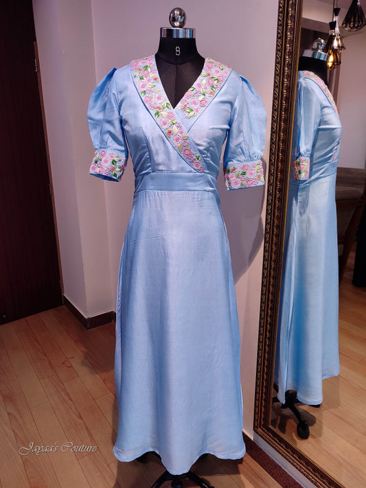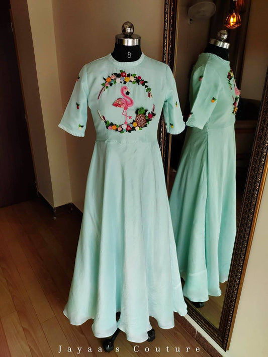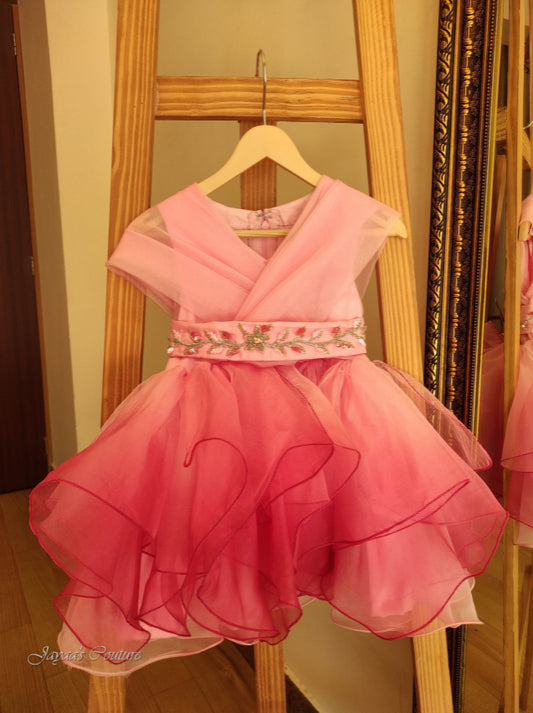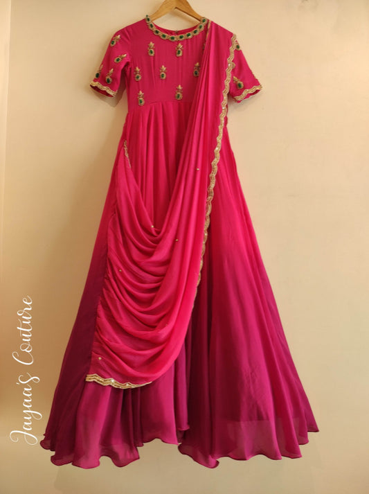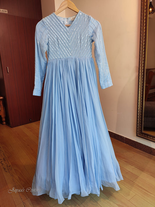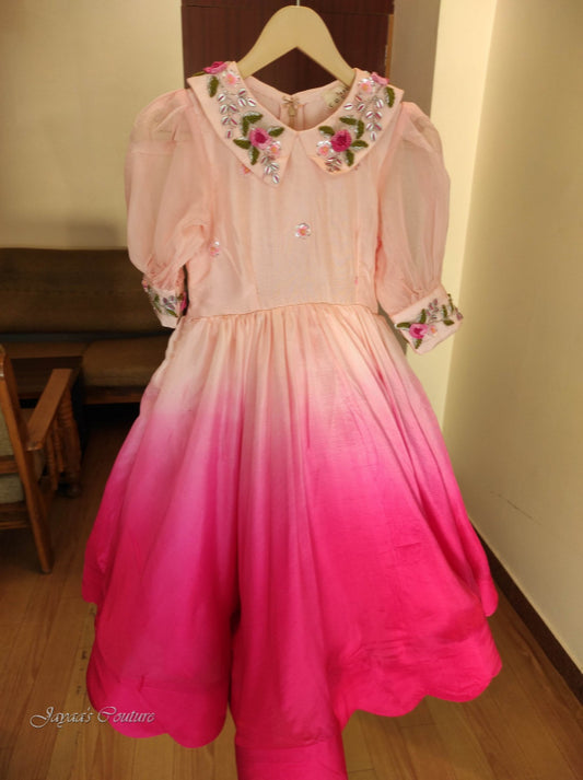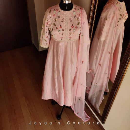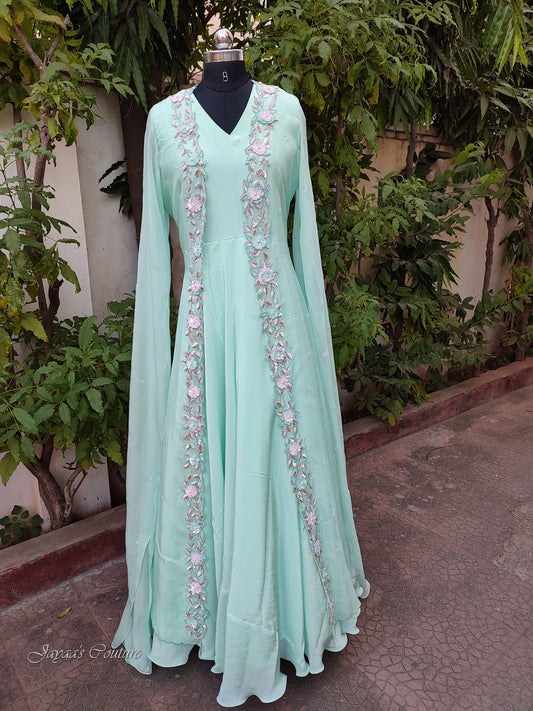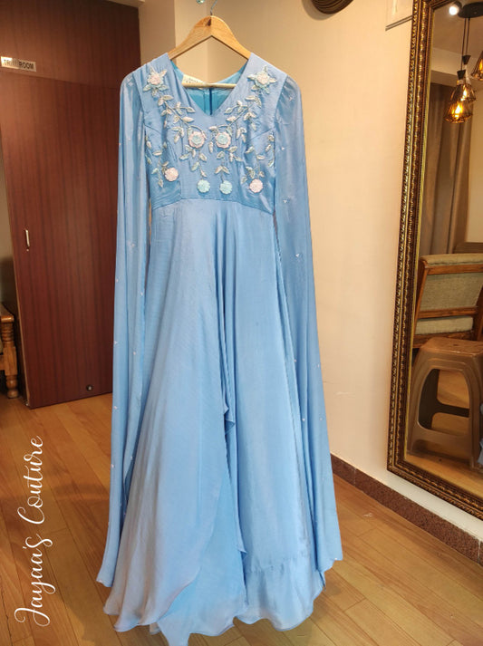 Pastel Beige To Dark Beige Ombre Gown With Belt & dupatta