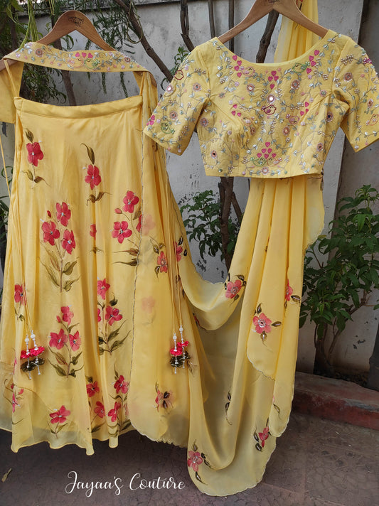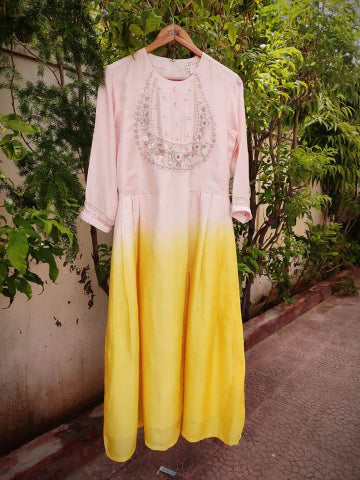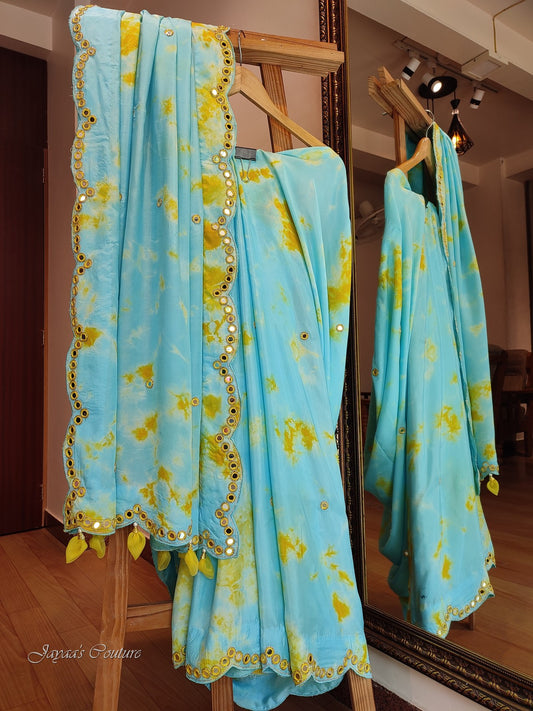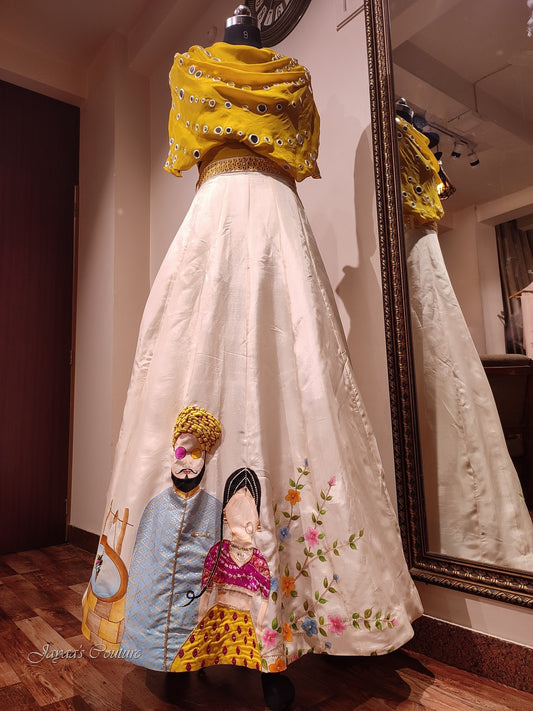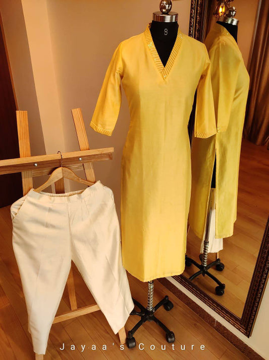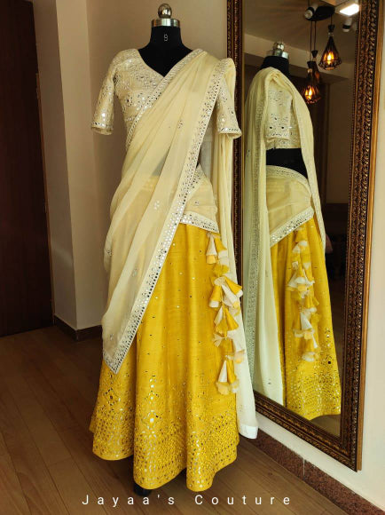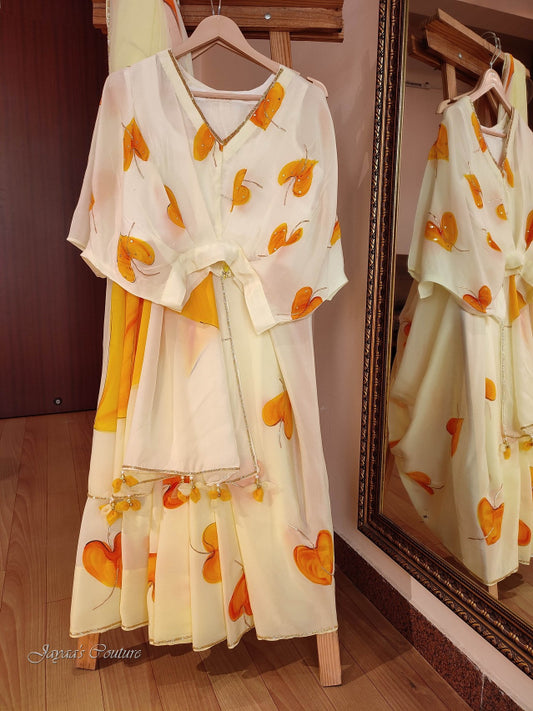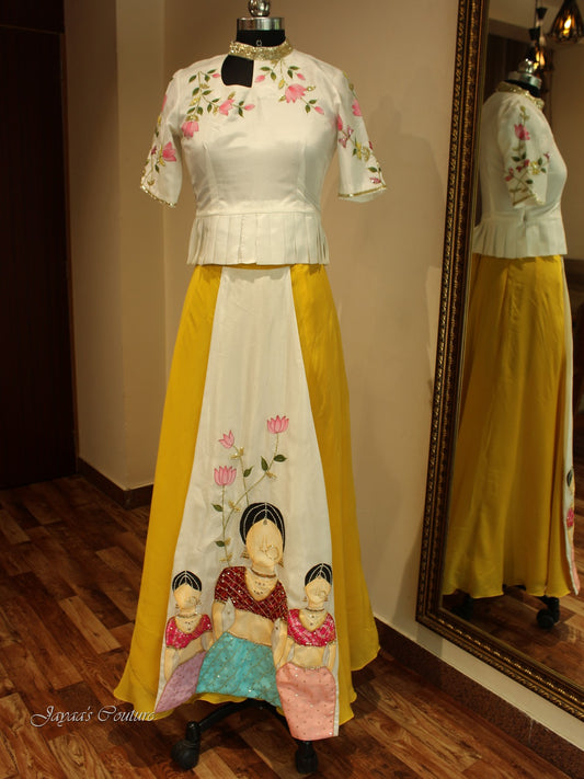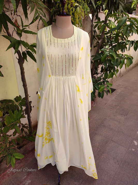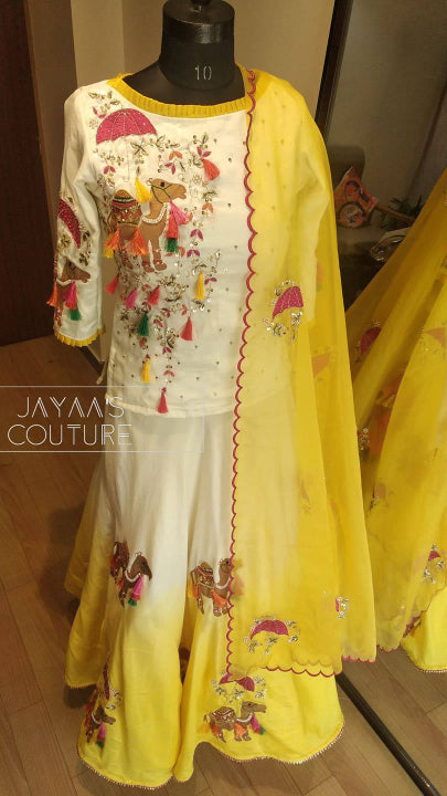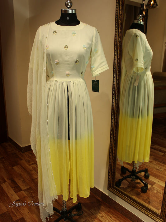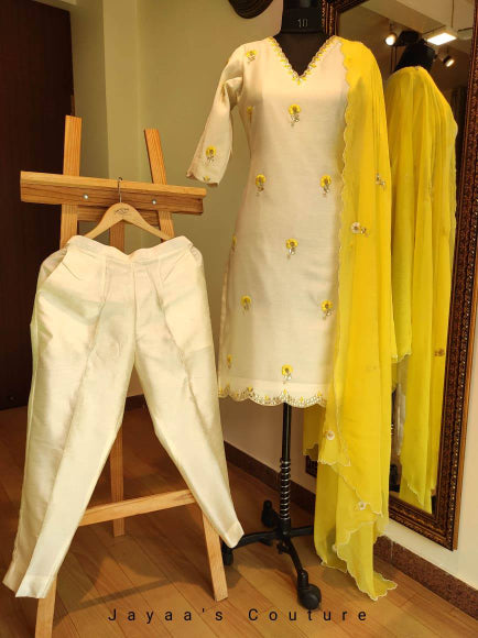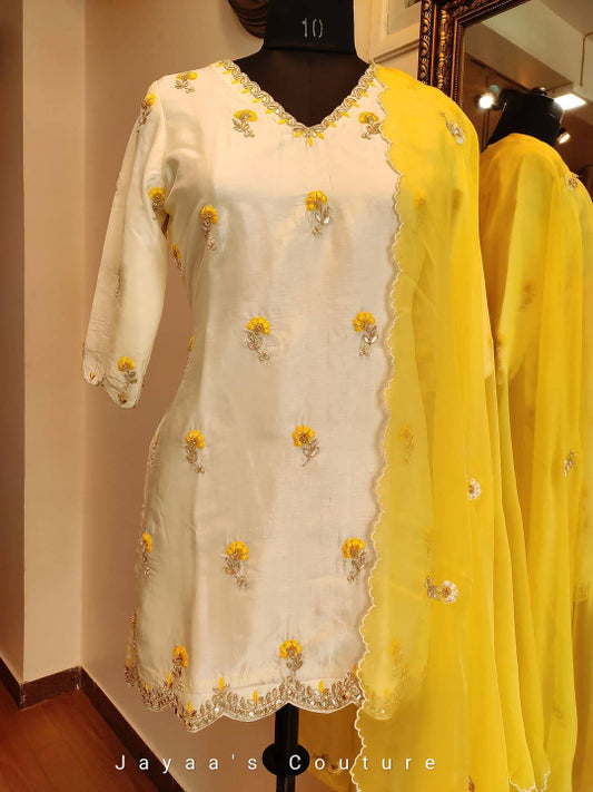 Off white Lemon Yellow Skirt Kurta Dupatta set