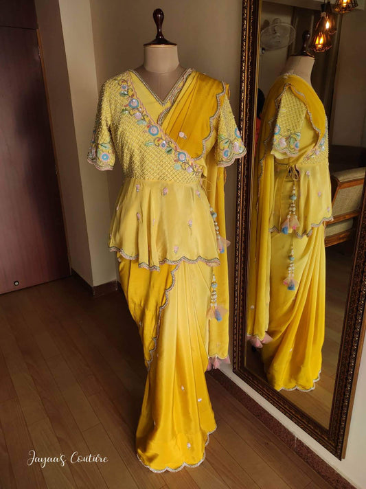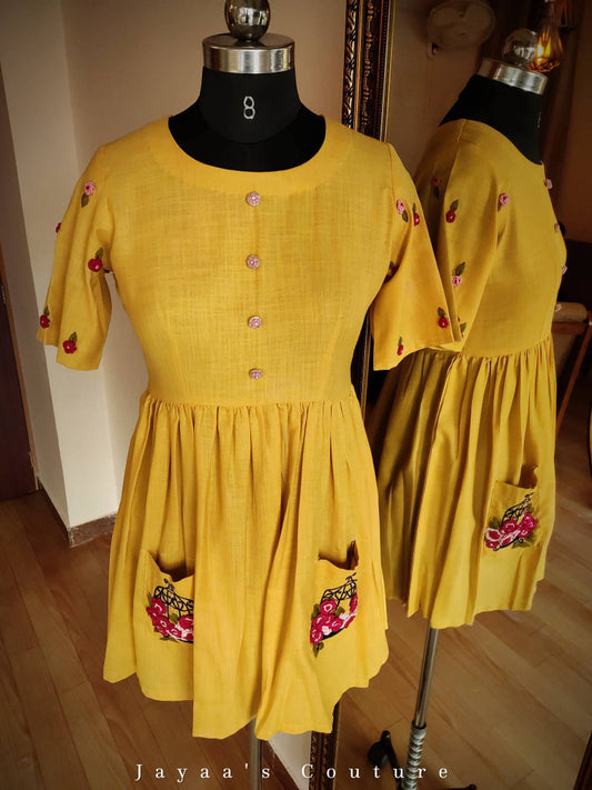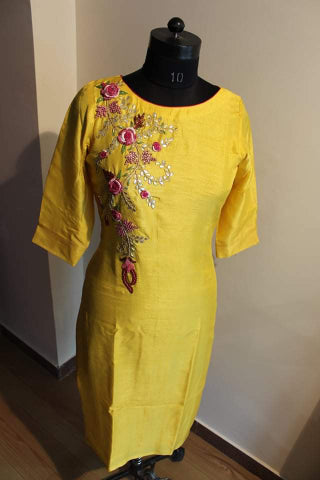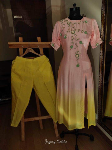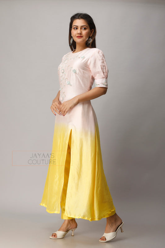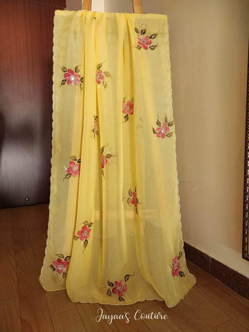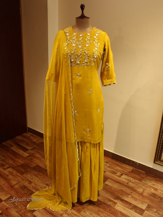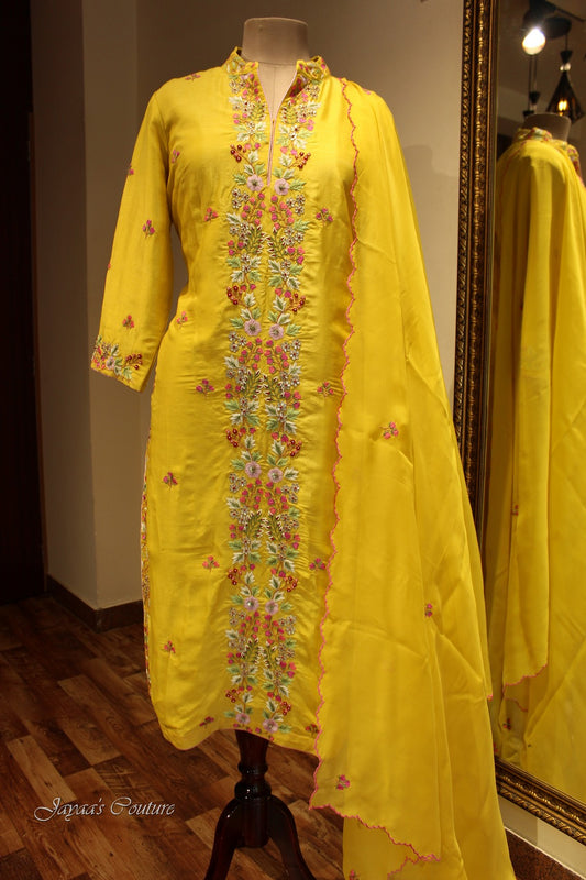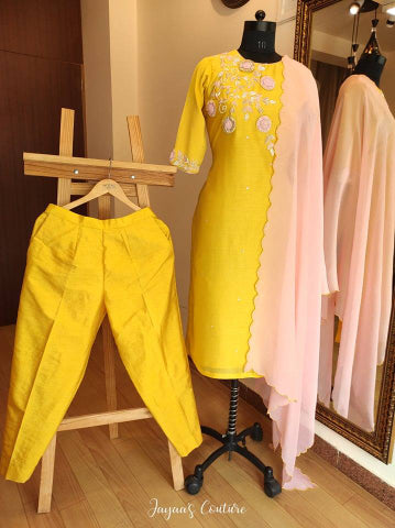 Yellow 3D Work Kurta Pants with Scalps Dupatta