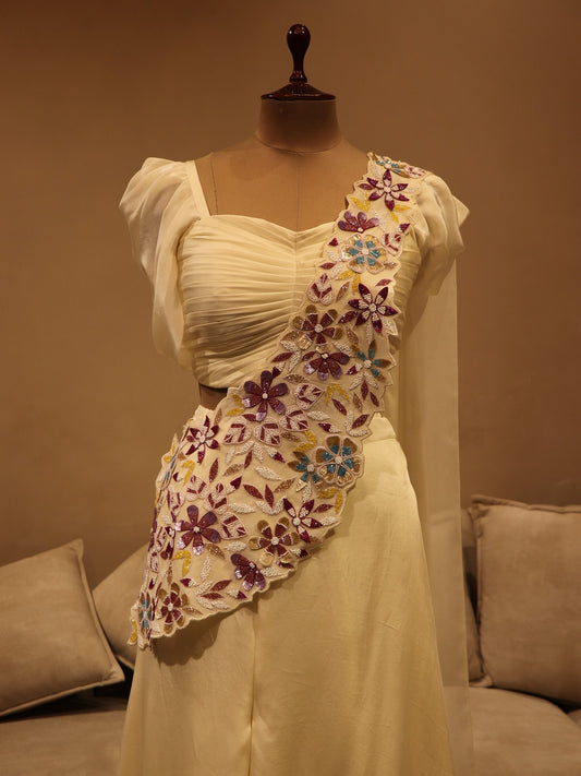 Off white Crop top plazo with drape dupatta