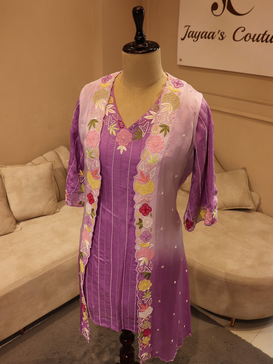 Lavander shaded kurti with shrug and pants