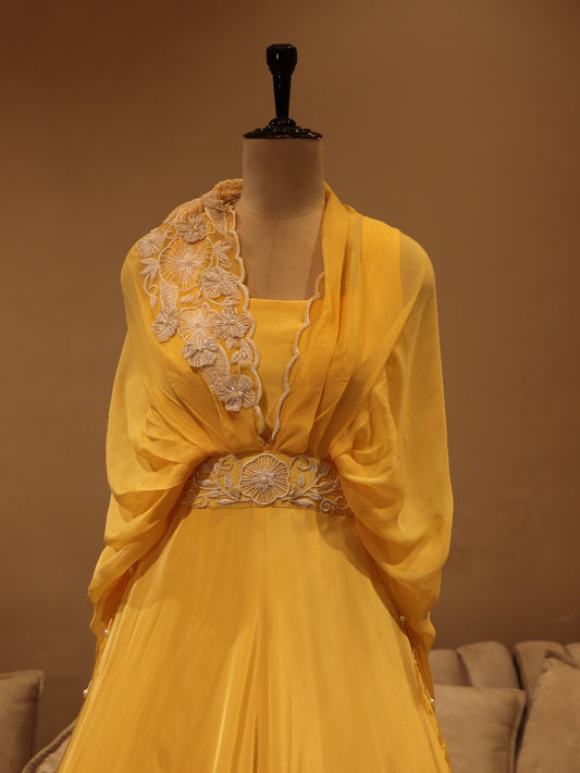 Lemon yellow drape gown