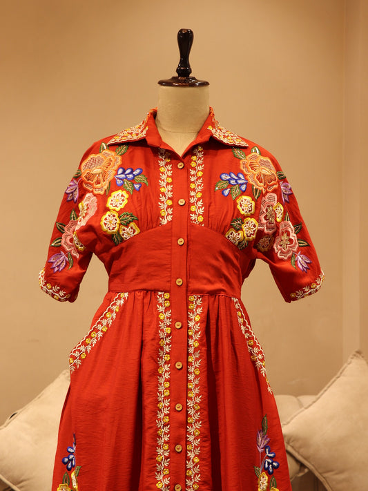 Hot red embroidered dress