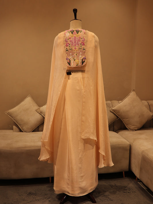 Peach crop top cape skirt