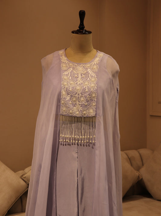 mauve crop top plazo cape set