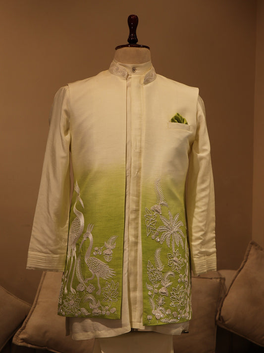 Off white green shaded mens indo western