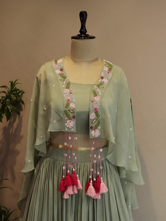 Sea green crop top cape with skirt
