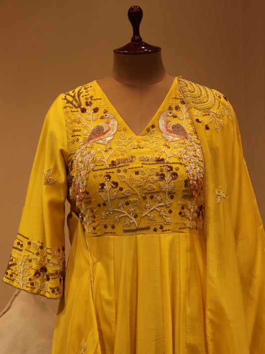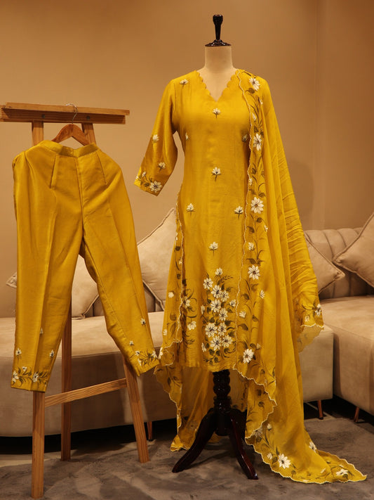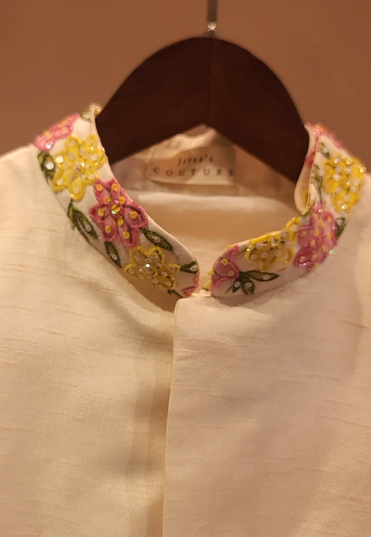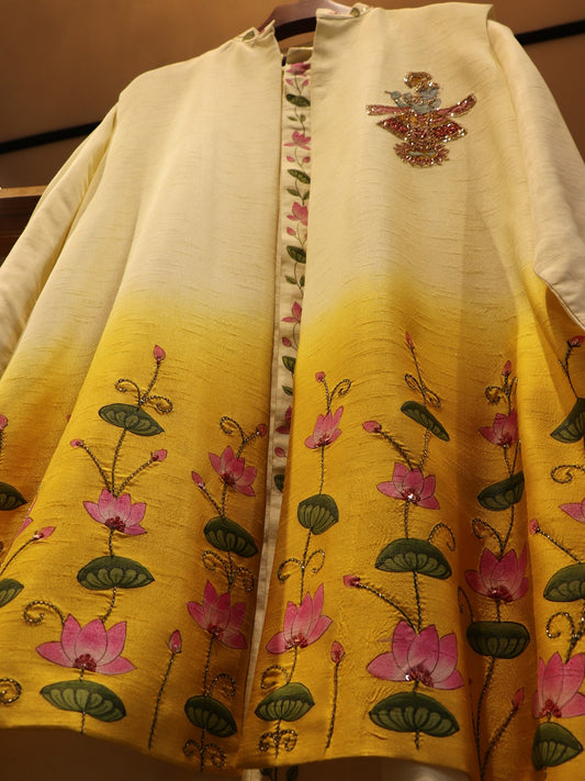 Yellow shaded pichwai shreenathji mens kurta jacket with pants