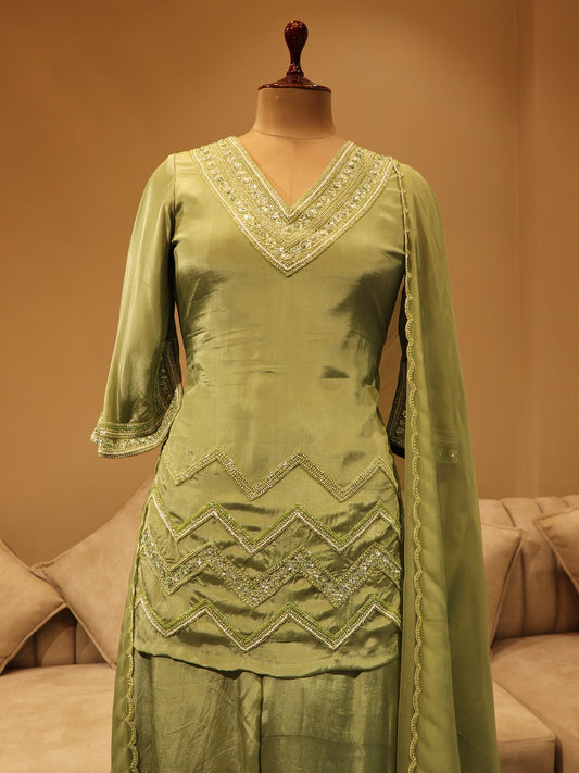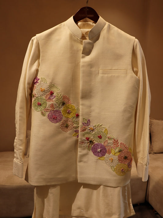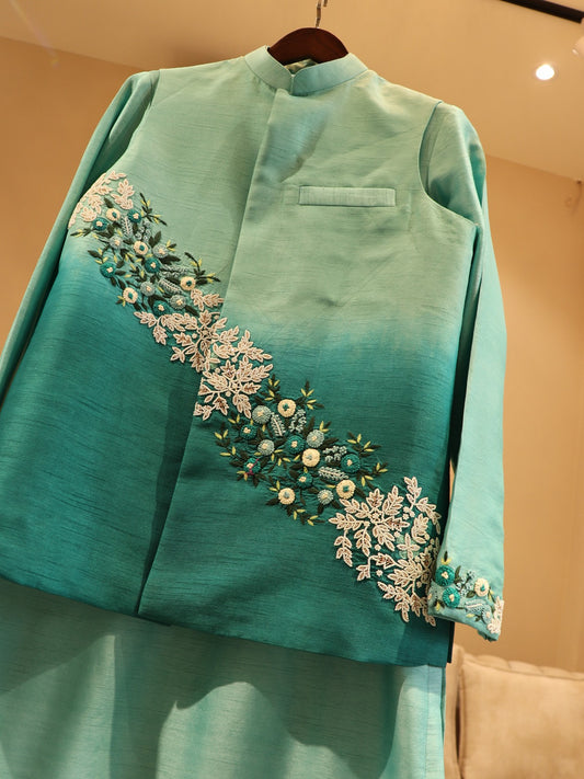 Sea green shaded embroidered mens neheru jacket with kurta pants for mens