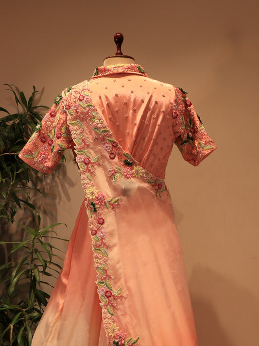 Peach shaded gown with drape dupatta