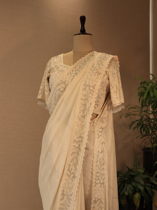 Pearl white embroidered saree