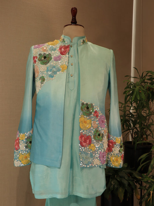Sea green shaded mens indo western